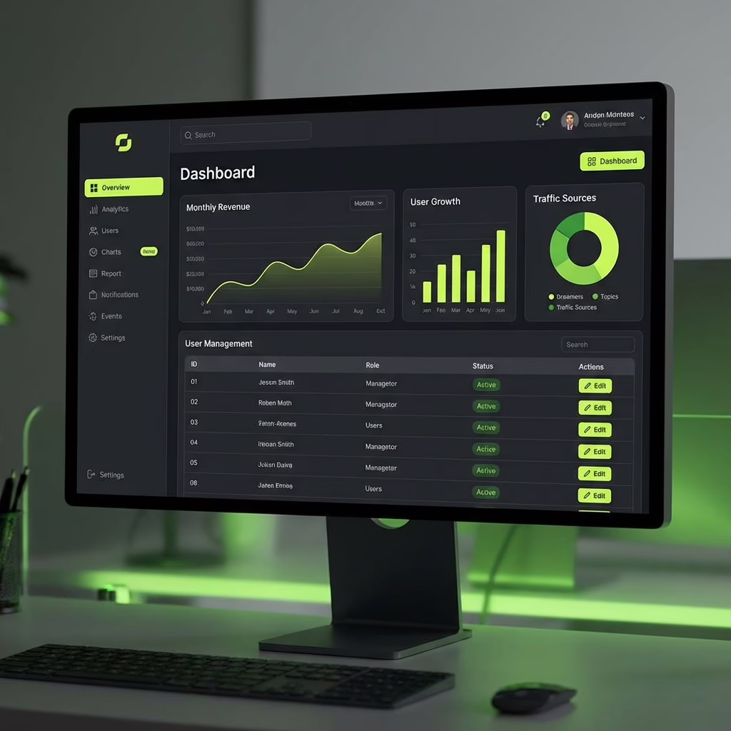 次世代電商數據儀表板,提供即時營收監控、銷售類別分析與訂單管理的高效能後台介面。